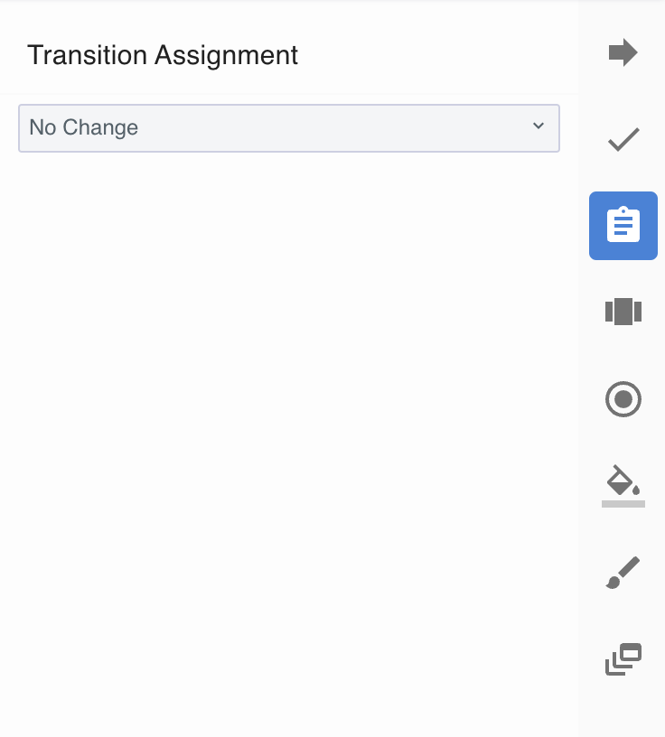 No Change means that there will be no assignment logic executed for this particular transition. Assignments from previous transitions will remain. This is commonly used for a “Save” transition where there is no need to update the form assignment if the user is simply saving their work.